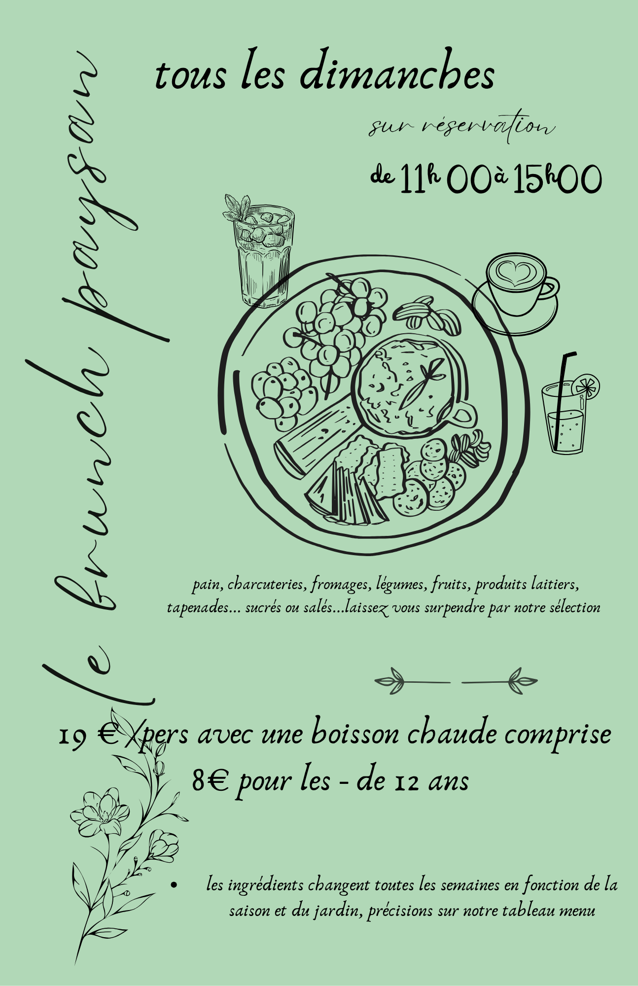 Le dimanche, profitez aussi de notre brunch maison, à savourer au calme au cœur du jardin.