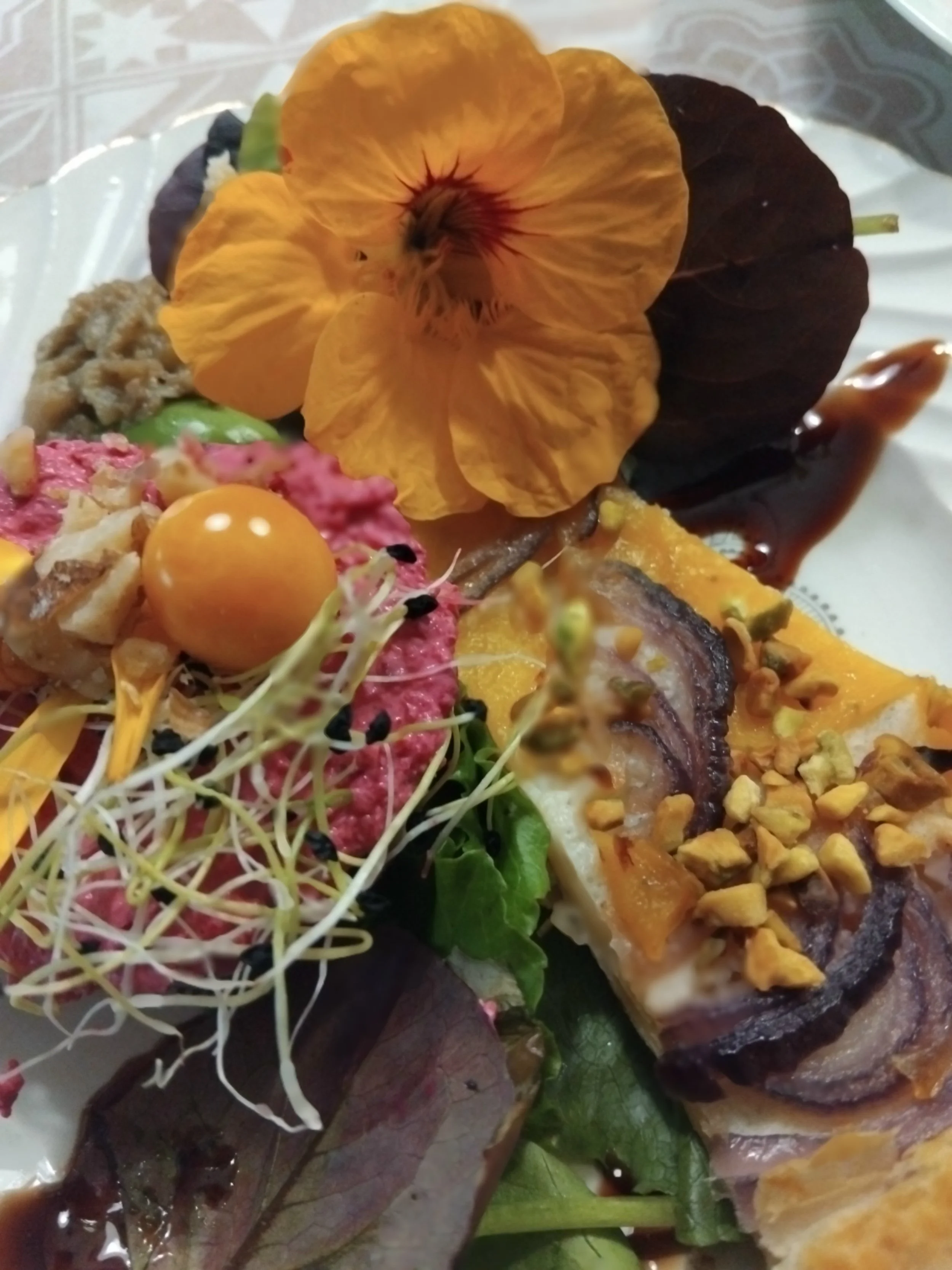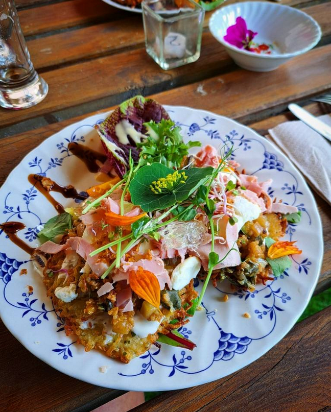 Ici, la cuisine est enracinée et inspirée de nos légumes produits dans le jardin où vous mangez et par les produits locaux, soigneusement sélectionnés chez nos producteurs voisins.