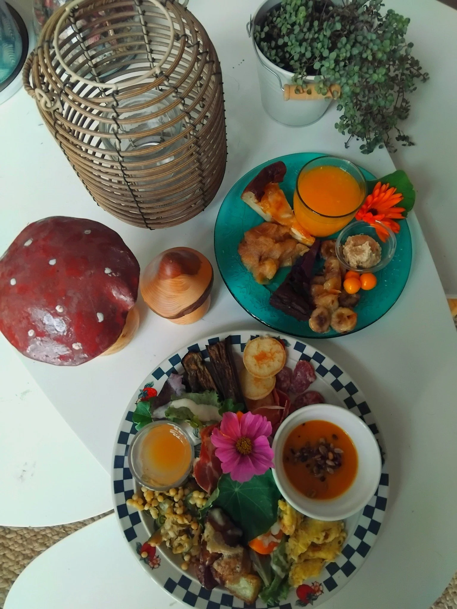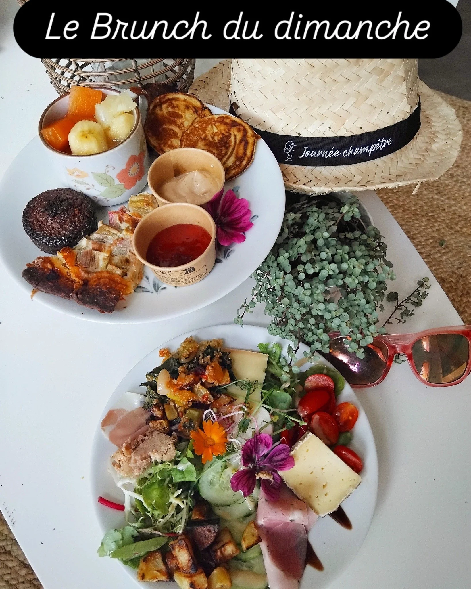 Dimanche midi pour le brunch paysan au jardin, une assiette salée et une assiette sucrée pour profiter à votre rythme et savourer pleinement votre dimanche pendant que les enfants jouent en toute liberté dans le jardin.